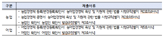 ※ 농어업 관련 서류는 국립농산물품질관리원, 각 지방해양수산청 및 온라인 '정부24'(www.gov.kr)에서 발급가능